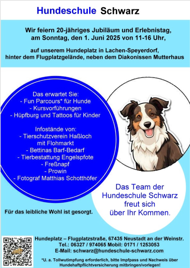 Triff mich in Lachen-Speyerdorf persönlich und verbringe mit uns einen schönen Tag mit Informationen, Gesprächen rund um den Hund- Spaß für Groß und Klein kommt natürlich auch nicht zu kurz. Schaut einfach vorbei…